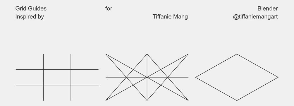 These grids are tools I personally use when working on composition in painting software, thanks to Tiffanie Mang for introducing me to this grid combo. So, I tried implementing this in Blender.